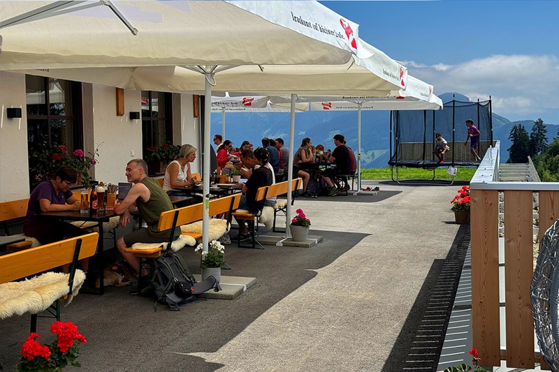Ob bei einem Glas Champagner oder einem Skiwasser - die tolle Stimmung und das winterliche Ambiente können Sie jederzeit auf unserer großen Sonnenterrasse genießen. Kommen Sie vorbei und überzeugen Sie sich selbst!